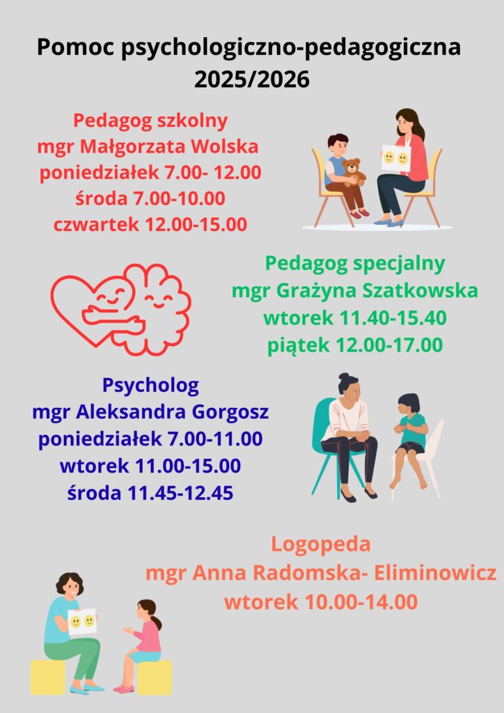 – Udzielanie pomocy psychologiczno-pedagogicznej w formach odpowiednich do rozpoznanych potrzeb.
